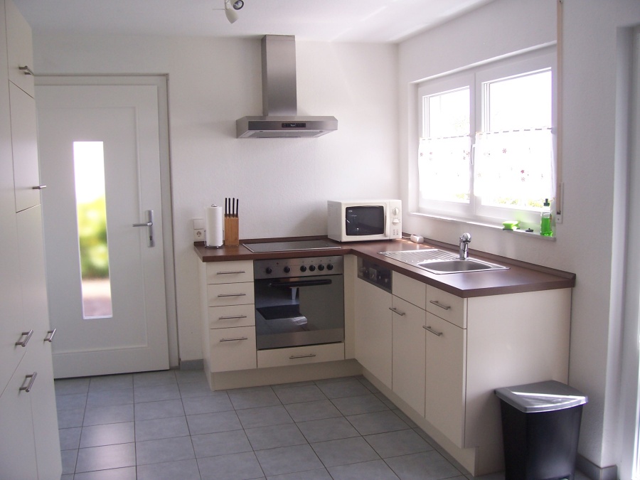 Die Küche im „Haus Kienast“ ist voll ausgestattet: Herd mit Cerankochfeld und Backofen, Geschirrspülmaschine, Kühlschrank mit Gefrierfach, Mikrowelle, Kaffeemaschine, Wasserkocher und Toaster. Auch Pfannen, Töpfe, Geschirr, Besteck und Gläser sind in ausreichender Stückzahl vorhanden.